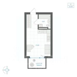Просторная 1-комн. студия с предчистовой отделкой в ЖК "Брусника в Эльтауне" на 5 этаже. Общая площадь: 31.83 кв.м., площадь гостиной 20.4 кв.м., из которых 5 кв.м. выделено под кухонную зону. Все окна выходят на одну сторону. В квартире один балкон, один совмещенный санузел. Высота потолков 2.7 м.