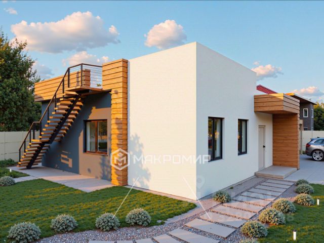Двухэтажный (второй этаж мансардный), кирпичный, обшит сайдингом (легкий уход), 1990 года постройки.