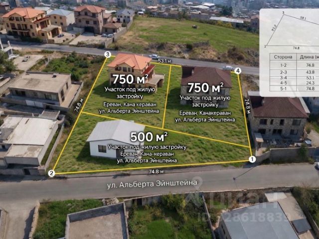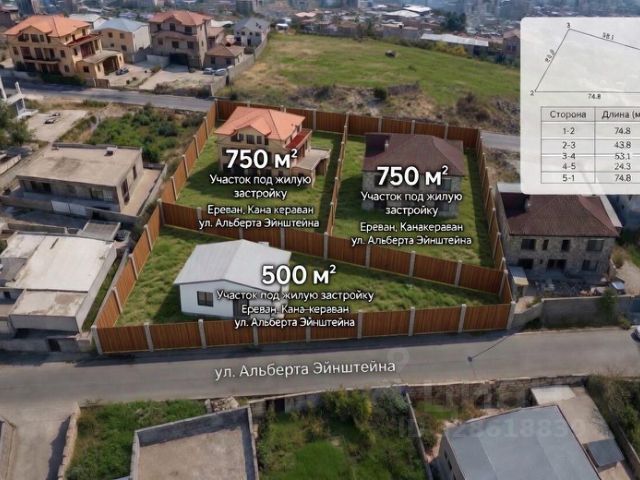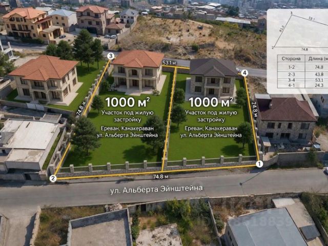 Продаётся земля в столице Армении — Ереване. Вы можете купить 10 соток (1000 м²) или сразу 15 соток (1500 м²). Оставшаяся часть участка (5 соток) остаётся у продавца под личную застройку — у вас будет ответственный сосед. Точный адрес: Армения, г. Ереван, район Канакераван, 20-я улица, участок 33. Ориентир — рядом с улицей Альберта Эйнштейна (тихий центральный район). Характеристики участка Параметр Значение Общая площадь участка 2000 м² (20 соток) Продаётся 1000 м² (10 соток) или 1500 м² (15 соток) Остаётся у продавца 500 м² (5 соток) — под строительство дома Назначение Земли поселений, ИЖС (жилая застройка) Рельеф С лёгким уклоном (перепад ~3 м), не требует сложных работ Форма Четырёхугольник, правильная Коммуникации (уже на участке!) Газ — подведён Электричество — подведено Водоснабжение — центральное, по селу Канализация — центральная, подключена Экономия: Вам не нужно тратить $500010000 и ждать год на подключение. Стройка начинается сразу. ранспорт и инфраструктура До центра Еревана — 1015 минут на машине До метро Барекамутюн (станция Дружба) — 57 минут До аэропорта Звартноц (EVN) — 2224 км, ~25 минут на такси Рядом: школы, детские сады, магазины, аптеки, остановки общественного транспорта Инвестиции и миграционные вопросы ВНЖ при покупке? Сама по себе покупка недвижимости не даёт автоматического ВНЖ, но является веским основанием для его получения. Многие наши покупатели успешно оформляют ВНЖ на этом основании. Гражданство при покупке? Нет, прямого гражданства за инвестиции в Армении нет. Единственный путь — натурализация после 3 лет проживания по ВНЖ. Условия сделки: Иностранцы могут покупать землю в Армении без ограничений. Сделка через нотариуса, регистрация в Кадастре. Возможна ипотека для нерезидентов (банки Армении работают с иностранцами). Помогаем с оформлением документов. Инвестиционная привлекательность: С 1 августа 2026 года в Армении запускается программа для инвесторов — статус постоянного жителя (ПМЖ) на 5 лет без требования постоянно находиться в стране. Покупка участка может стать первым шагом. Звоните, пишите в / . Покажу участок, пришлю GPS-координаты, помогу с организацией сделки. Собственник. Без комиссии.
