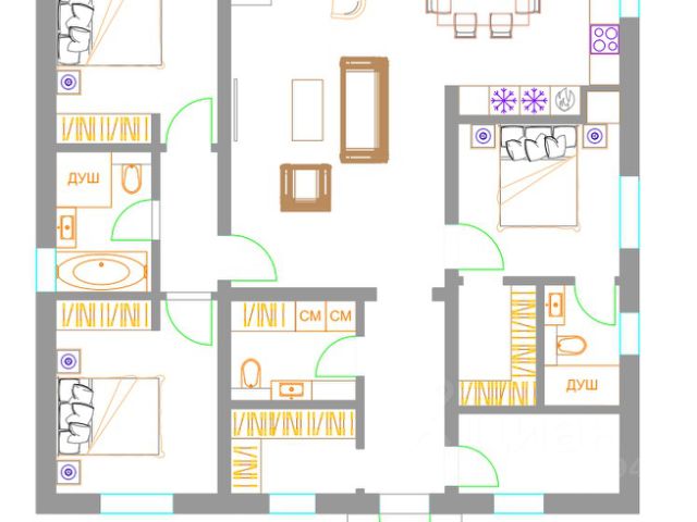 - все ванные комнаты с с/у отделаны керамогранитом, установлена вся сан.техника душевая кабина и ванна;