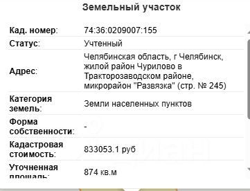 Участок для строительства жилого дома, находится в долгосрочной аренде на 20 лет. Переуступка права. Переоформление- через МФЦ. Цена значительно ниже кадастровой стоимости, чем у собственников. Чем быстрее вы построите жилье, тем быстрее выкупится участок в собственность. Гopодcкaя прoпиcкa! Вдоль участка проходит газ. Рядом центральный водопровод, канализация, электрический столб. Кадастровый номер 74:36:0209007:155. Микрорайон "Развязка" - новый, быстро застраивающийся район. Рядом новая большая школа, детский садик, поликлиника, магазины "Пятерочка", "Красное и белое", остановка общественного транспорта. Хорошая транспортная доступность в разные части города. Торг уместен. Возможен обмен на авто.