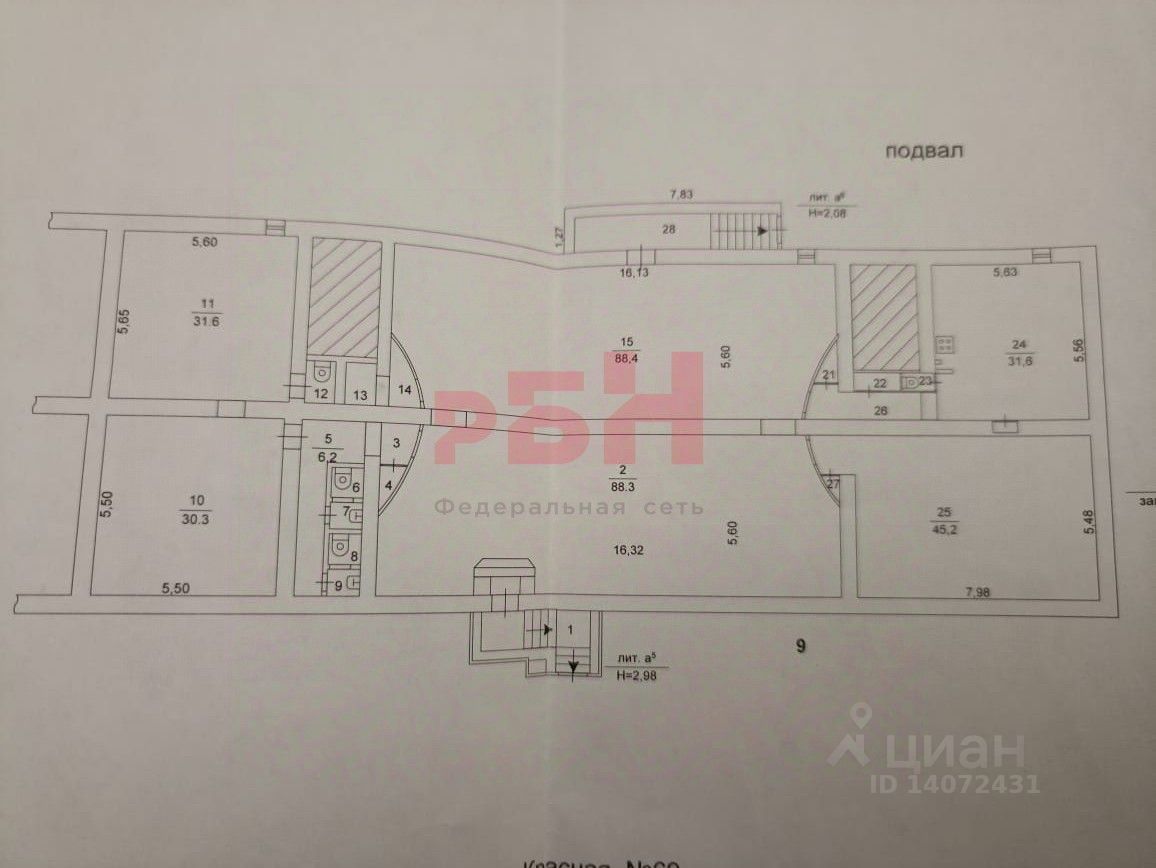 Сдам помещение свободного назначения площадью 349,3 м² находящегося в цокольном этаже 5-ти этажного дома по адресу: г. Челябинск, ул. Красная, д. 69