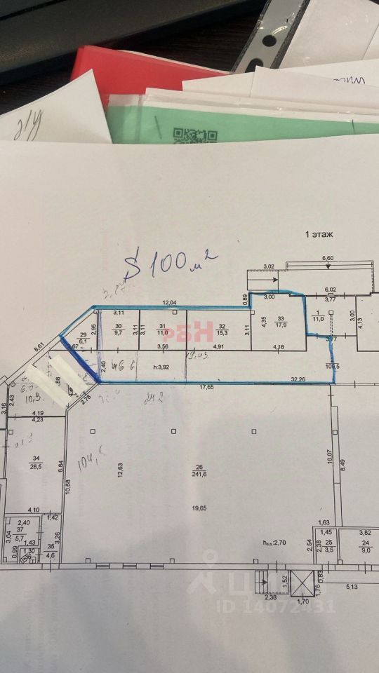 - на схеме помещение выделено синим контуром;