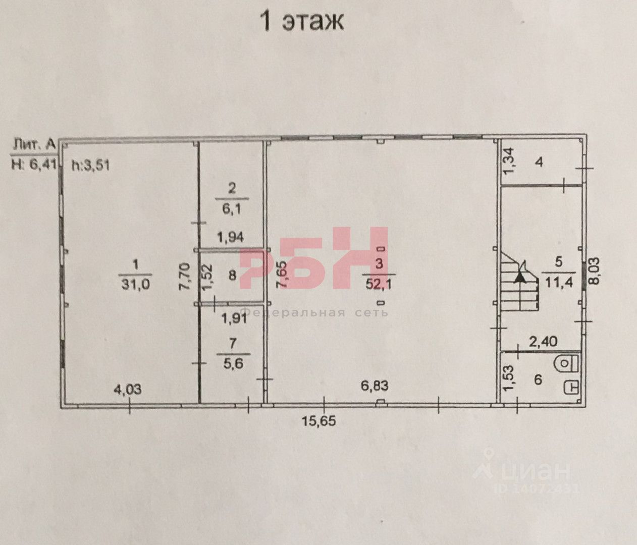 - высота потолка 1-ый этаж - 3,51м, 2-ой этаж 2,43 м;
