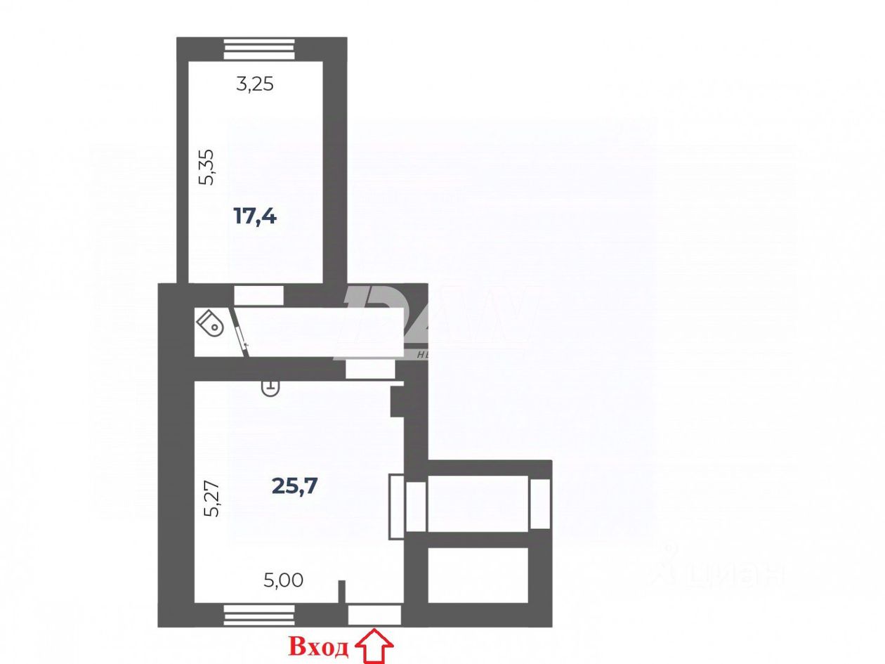 Общая площадь: 52,1 кв.м.