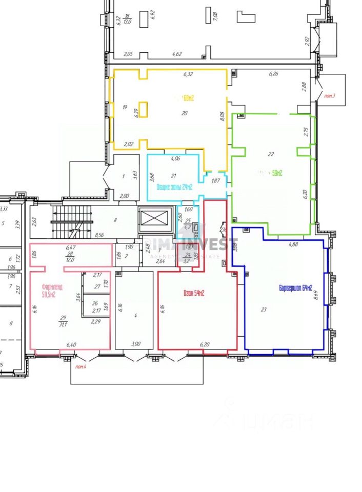 Помещение 60 квм + места общественного пользования.
