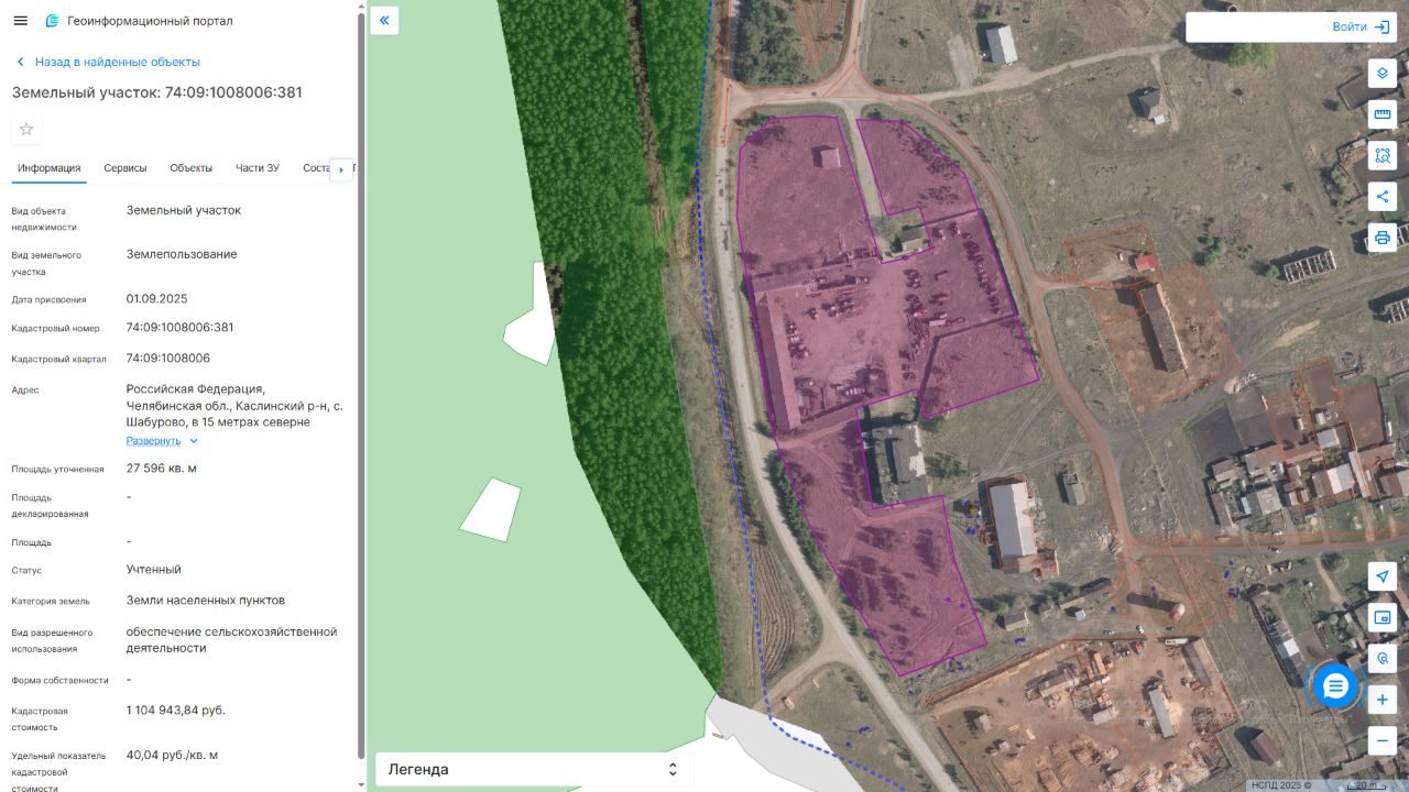 Местоположение: Российская Федерация, Челябинская область, Каслинский р-н, с. Шабурово, в 15 метрах севернее земельного участка с кадастровым номером 74:09:1001001:6 Площадь: 27596 кв.м. Кадастровый номер: 74:09:1008006:381 Категория земель: земли населенных пунктов. Вид разрешенного использования: обеспечение сельскохозяйственной деятельности.