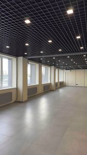 Готовый ремонт: заезжай и работай. Подвесной потолок грильято, точечные светильник, кондиционер, перегородки из современного ЛГКЛ в бежевом цвете.