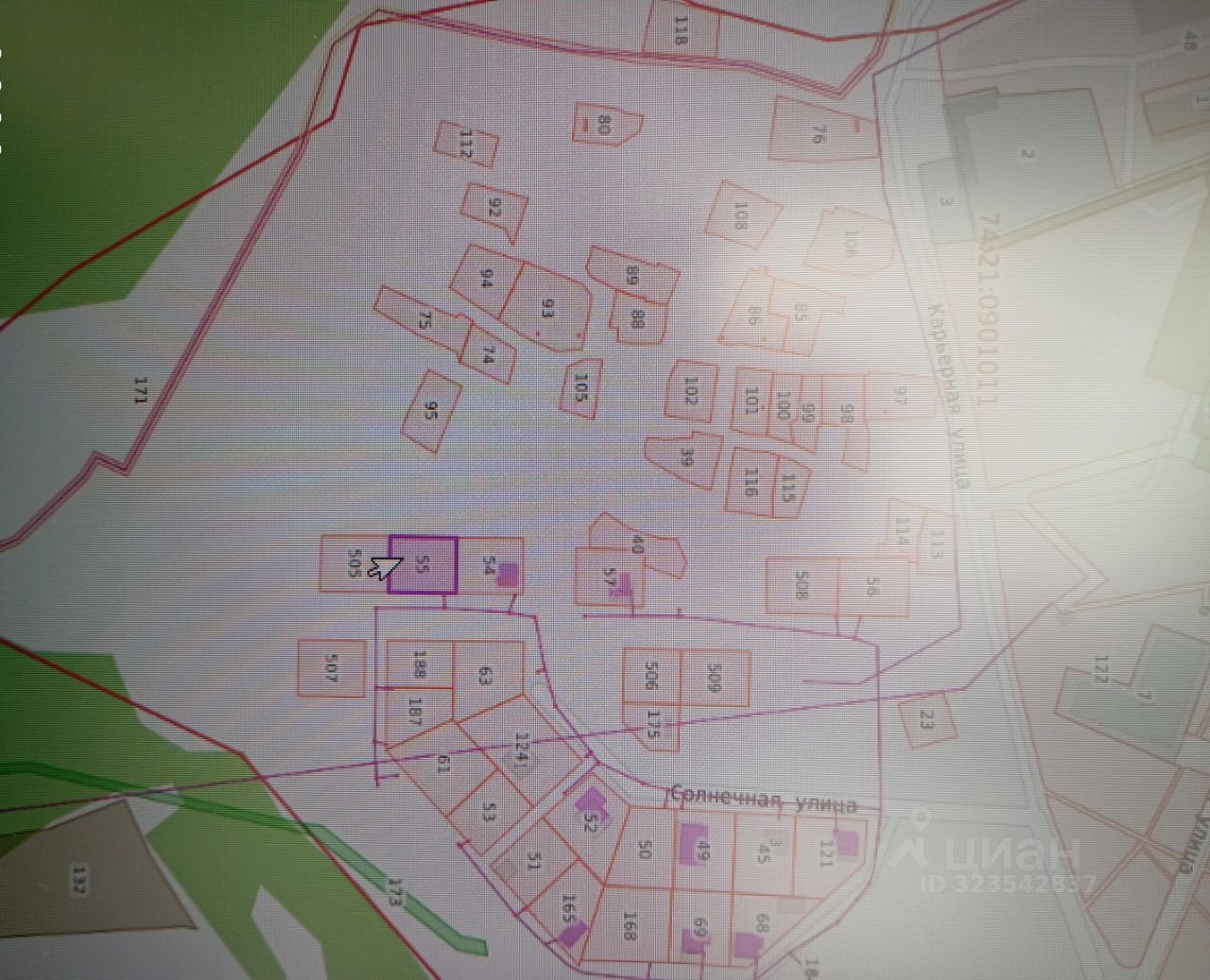 Земельный участок с кадастровым номером 74:21:0901011:55 площадь 750 по адресу Российская Федерация, Челябинская область, муниципальный район Увельский, поселок Нагорный, улица Горняков, земельный участок 11