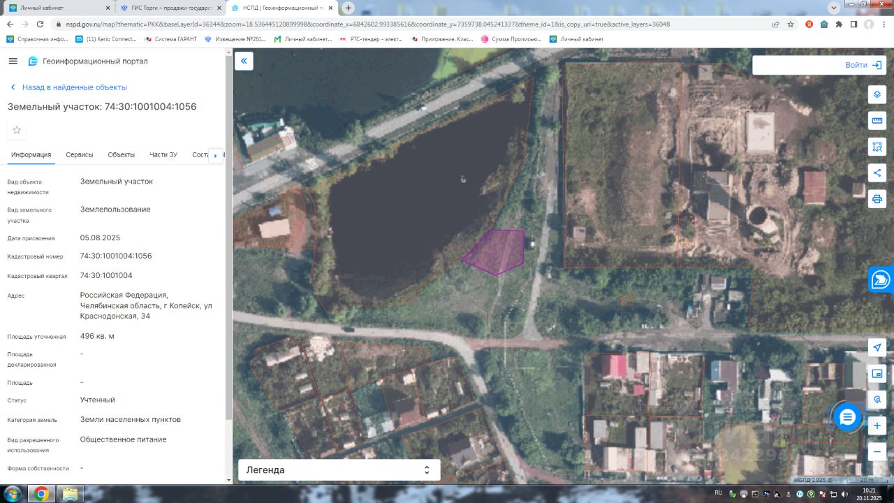Земельный участок с кадастровым номером 74:30:1001004:1056 площадь 496 по адресу Российская Федерация, Челябинская область, г Копейск, ул Краснодонская, 34