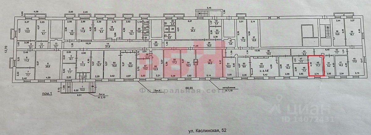 Сдам офисное помещение, площадью 11,1 м² в цоколе 5-ти этажного здания по адресу: г. Челябинск, ул. Каслинская, д. 52
