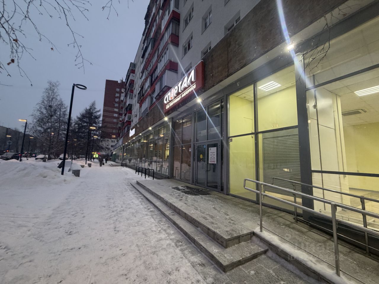 Высокий пешеходный трафик благодаря соседству с двумя крупными якорными арендаторами: спортивный маркет СПОРТАЛ и магазин верхней одежды ЕРМАК.