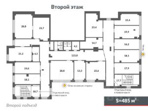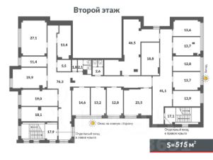 Также возможна аренда сразу 1 и 2 этажей - 351+515кв.м.