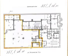 Распределение: цоколь (351 м²), 1 этаж (519 м²), 2 этаж (575 м²).
