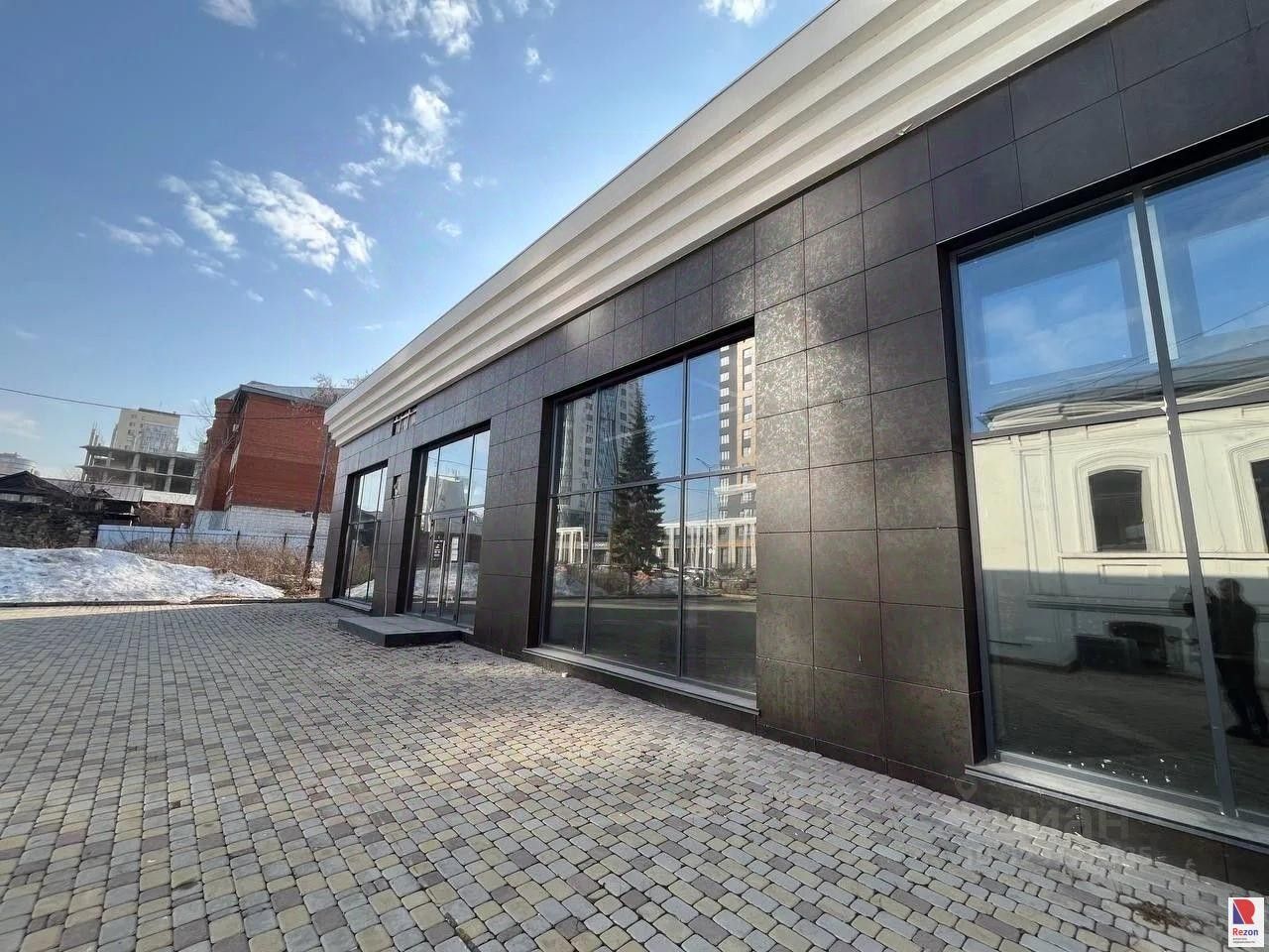Фасад: Полное витражное остекление лицевой части обеспечивает отличную естественную освещенность и эффектную витрину для презентации вашего бизнеса прохожим.