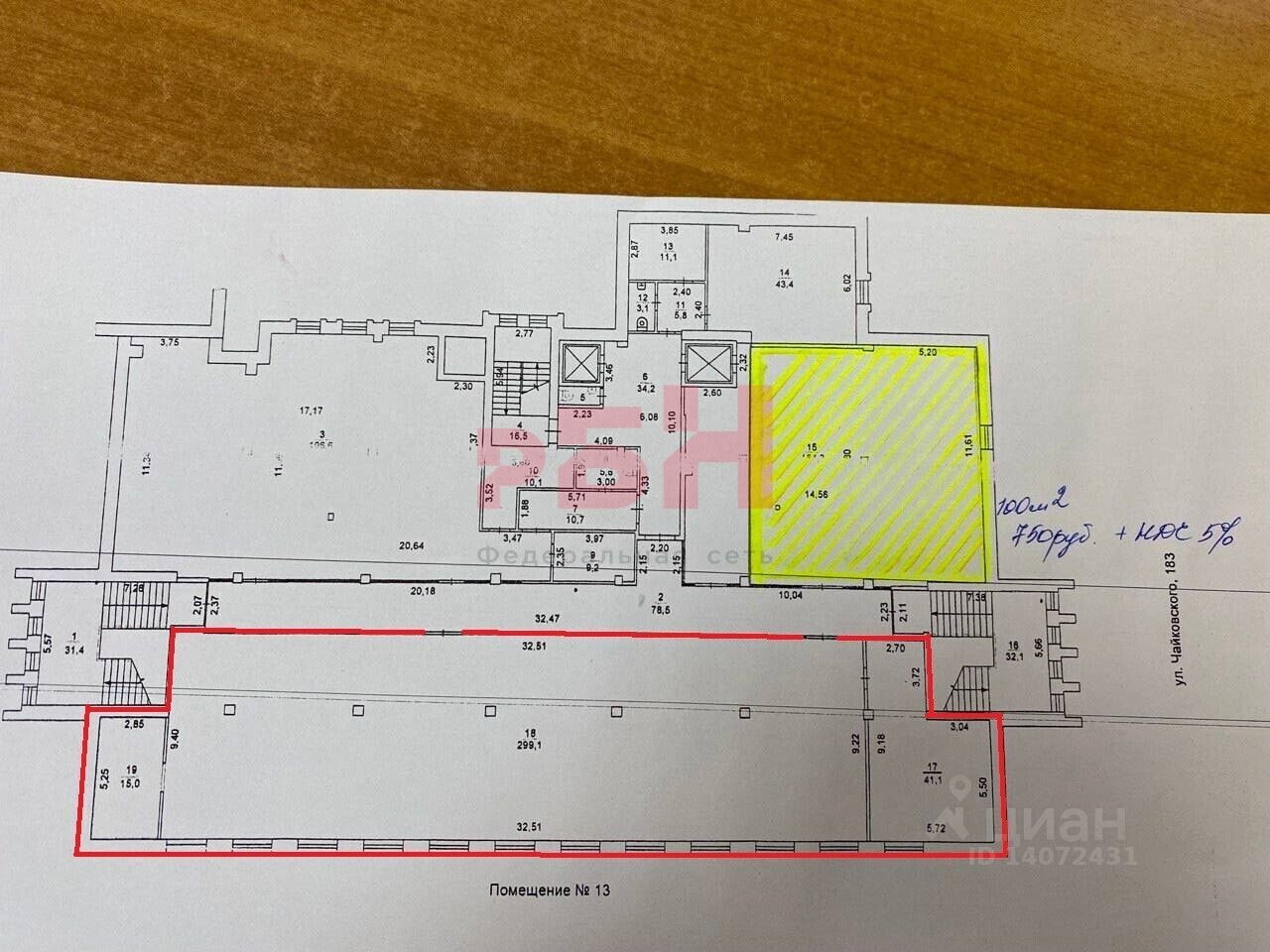 - помещение находится на перекрестке ул. Чайковского и ул. Братьев Кашириных;