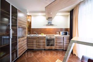 Кухня отделена от гостиной барной стойкой и оснащена всей нужной для проживания мебелью и бытовой техникой.