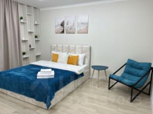В апартаментах возможно размещение 2 человек, спальное место - двуспальная кровать с ортопедическим матрасом. Кухня оборудована необходимой посудой и техникой: электрическая плита, холодильник, чайник, микроволновая печь. К услугам гостей также Wi-Fi, телевизор смарт ТВ, стиральная машина, фен, утюг, гладильная доска, сушилка для белья, постельное белье, полотенца, средства личной гигиены.