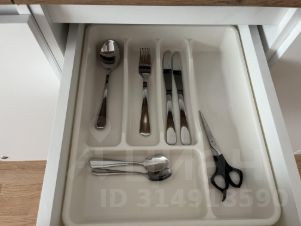 Кухня оснащена всем необходимым: полноценная плита с духовым шкафом, микроволновка, чайник, новая посуда, столовые приборы и кухонные принадлежности.