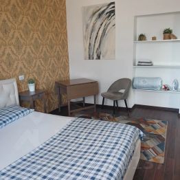 Для комфортного сна есть большая двуспальная кровать с удобным ортопедическим матрасом.