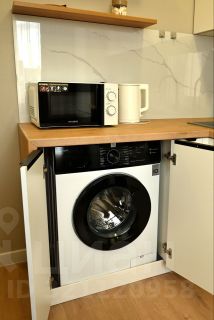 Оборудованная кухня (холодильник, духовой шкаф, печь СВЧ, электрочайник, посуда, приборы, стиральная машинка)