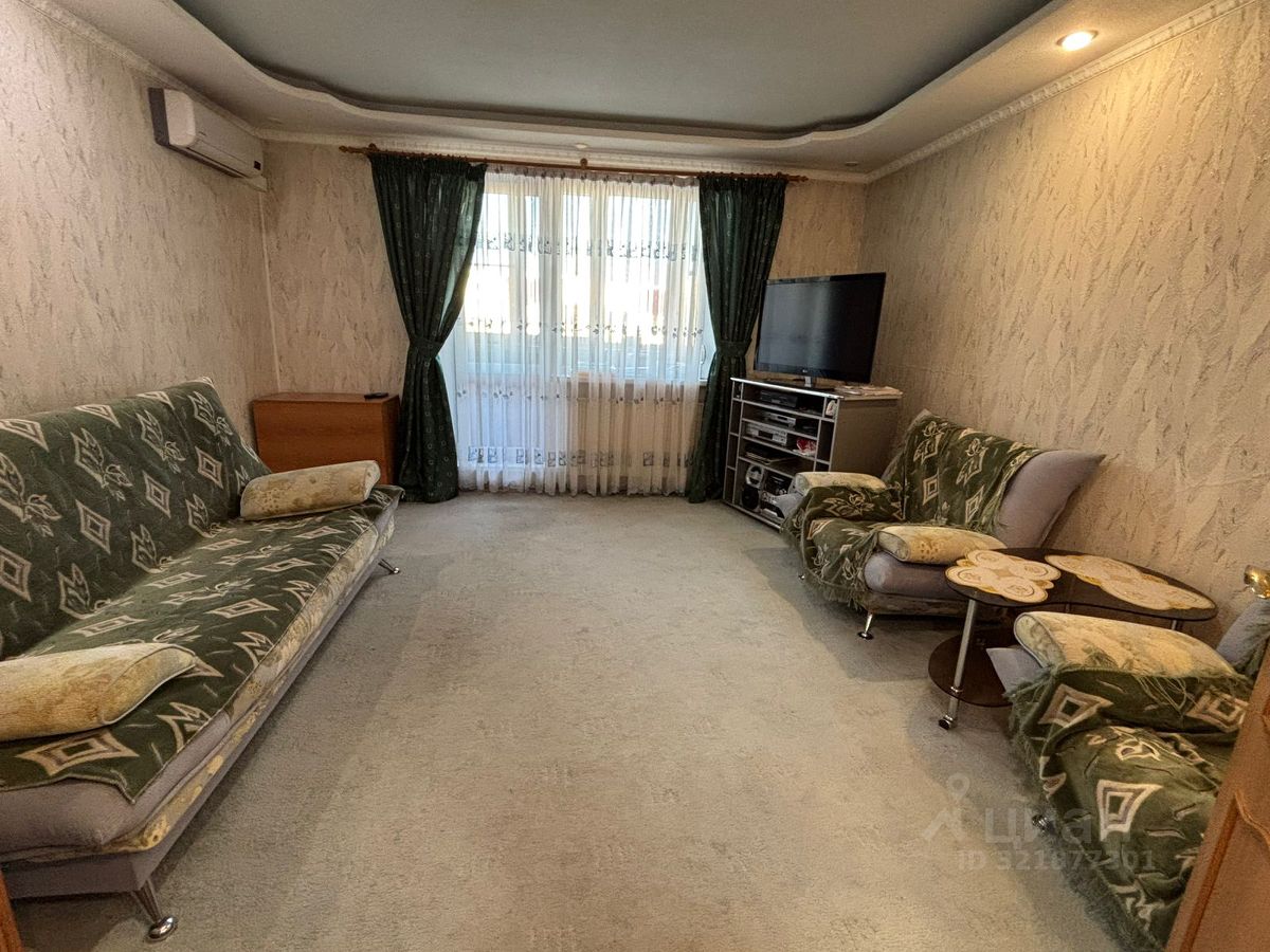 В гостиной имеется: большой телевизор с кабельным телевидением подключенным, кондиционер, диван спальня и 2 кресла к нему, журнальный столики, также большой сборный стол на 8-10 человек, 6 стульев, видеомагнитофон, музыкальный центр.