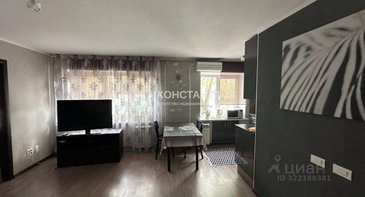Расположена на 2 этаже 5 этажного дома. Сделан евроремонт. Санузел совмещенный. Балкона нет. Окна выходят на небольшую дорогу, вдоль которой парковочные места.