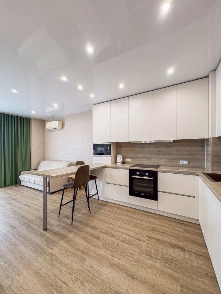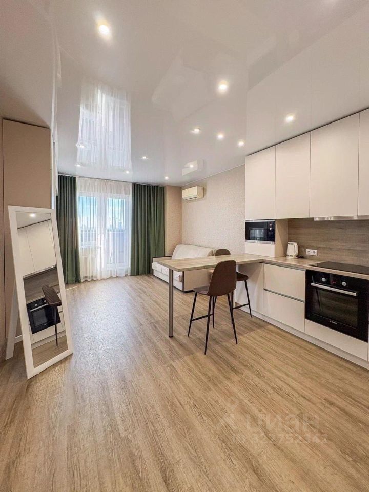 Видовая Квартира-студия в отличном состоянии, произведен современный ремонт в светлой пастельной гамме, полностью укомплектована современной мебелью, техникой и элементами декора для длительного и комфортного проживания.
