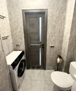 Ванная: Стиральная машина с функцией стирки паром, большая ванная, шторка, коврик, шкафчик с зеркалом, раковина с тумбочкой(много места для хранения), туалет, стойка для туалетной бумаги.
