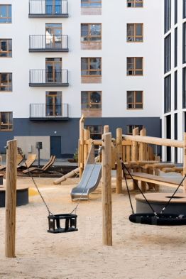 Сдам студию +2спальни. В новом квартале ЖК Хюгге, Голос Эльтаун. Экологически чистое место, в окружении леса и озера. Есть все для проживания — бытовая техника, системы хранения.