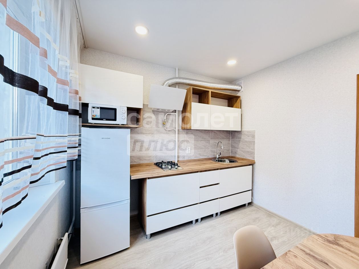 + Кухня 9 кв.м., кухонный гарнитур, газовая плита, вытяжка, холодильник, микроволновая печь, обеденная зона.