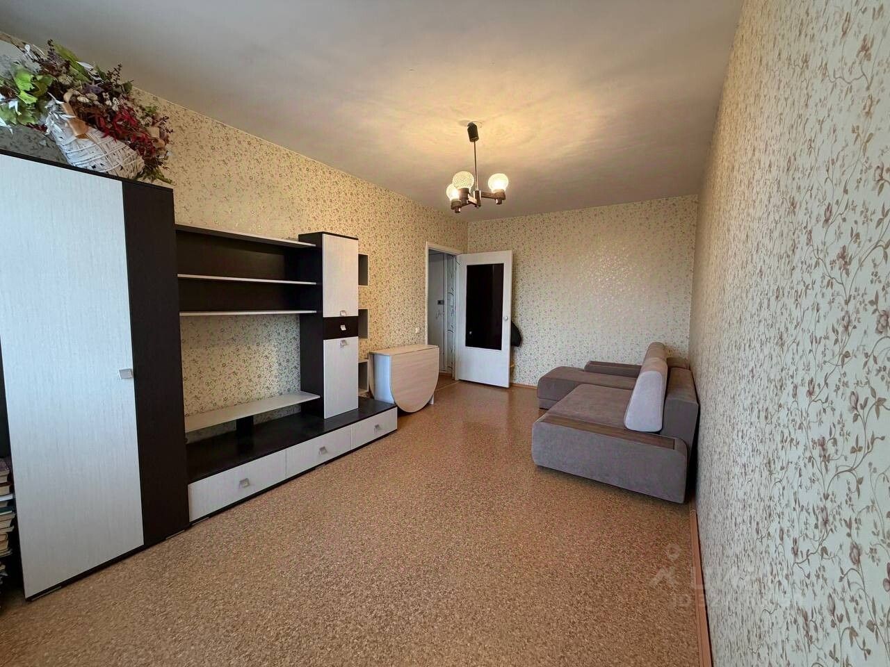 Квартира мебелирована: большой диван, стенка в зале, раскладной стол, кухонный гарнитур, стенка-прихожая.