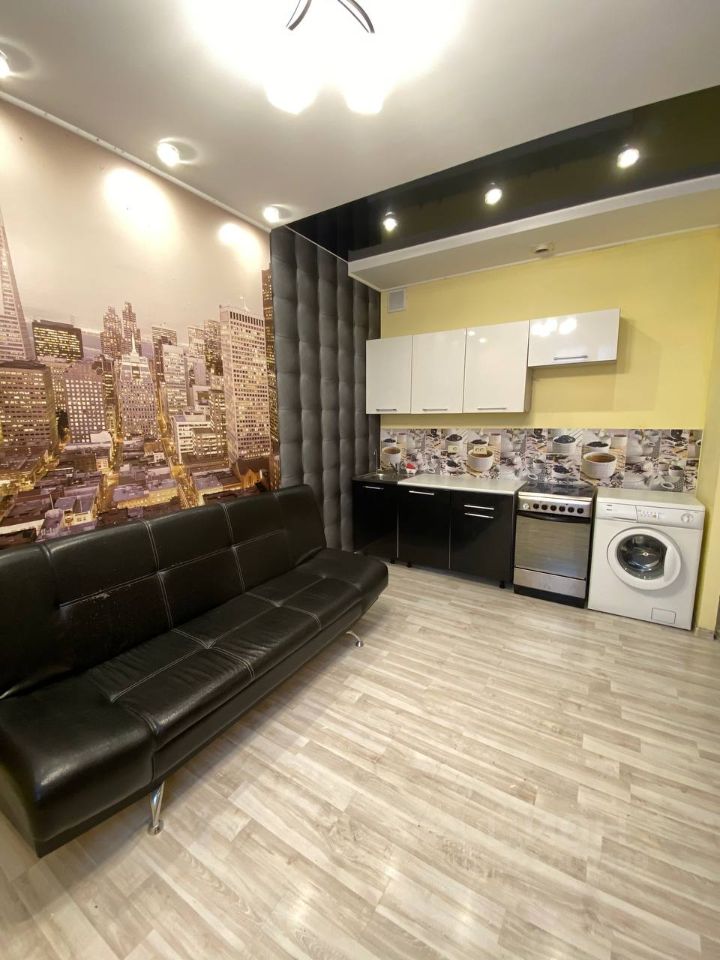 В квартире выполнен косметический ремонт. Просторная кухня оснащена необходимой мебелью и техникой, включая холодильник. В одной из комнат также есть мебель. Санузел совмещенный, оборудован ванной и стиральной машиной. Из комнаты есть выход на лоджию, где приятно проводить время на свежем воздухе.