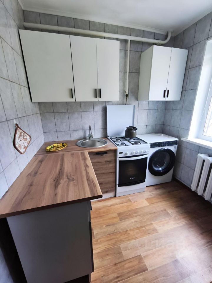 В квартире есть всё необходимое для проживания. Кухня с обеденным столом, посудой, газовой плитой, холодильником и стиральной машиной.