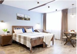 В номере ecть все необходимое для комфортного проживания: двуспальная кровать, 2 кресла, телевизор, wi fi, кондиционер, постельное белье, полотенца, гигиенические средства, оборудованная кухня, посуда, санузел.