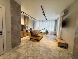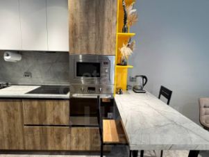 Квартира представляет собой небольшой дом с отдельным входом современной планировки кухня-гостиная + 2 спальни и санузлами на каждом этаже!