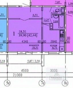 - Комната - 18.3 кв.м, кухня - 9 кв.м.