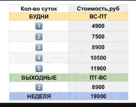 Цена зависит от дня недели и количества дней. На 1 сутки сдаем в определенных условиях.