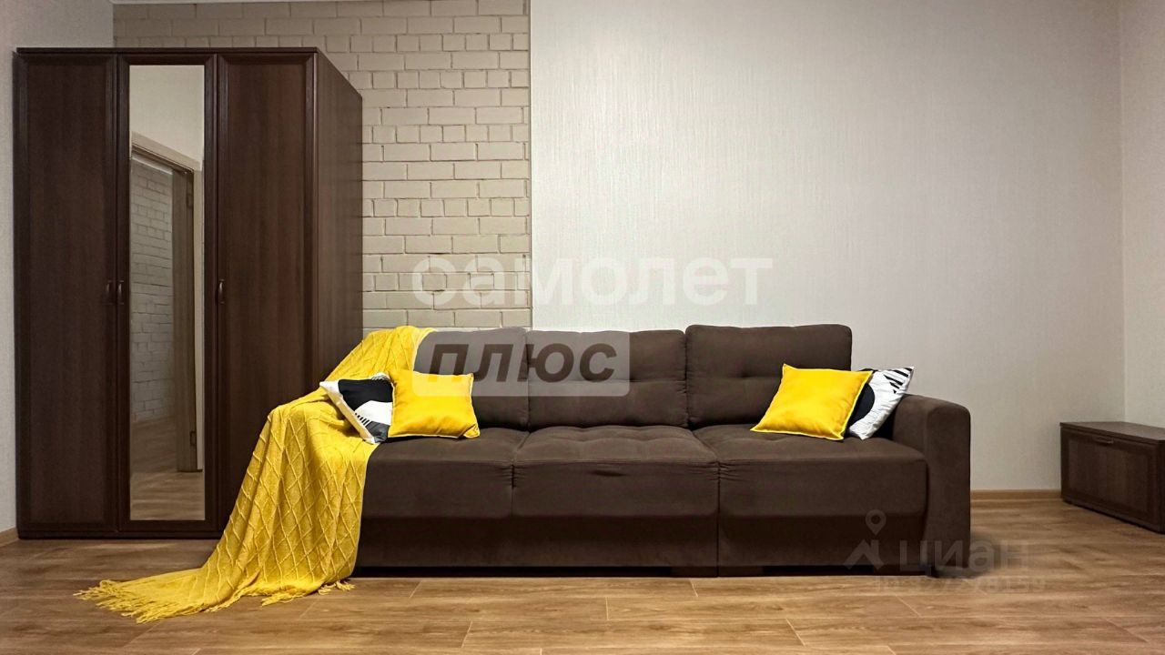 Квартира состоит из просторной комнаты и кухни-гостиной с панорамным балконом, где можно наслаждаться утренним кофе или вечерними закатами. В большой комнате имеется вся необходимая мебель: удобный диван, шкаф и тумбы для хранения вещей. Просторный коридор оснащен вместительным шкафом-купе, что позволяет удобно организовать пространство.