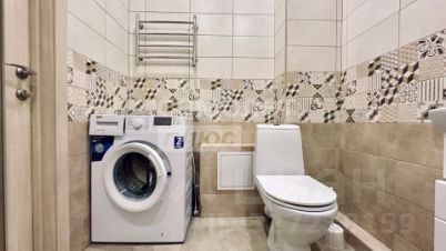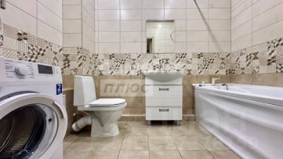 Санузел совмещенный, оформленный в кафеле, с полноценной ванной и стиральной машиной. На кухне вас ждёт полный набор мебели и техники: кухонный гарнитур, холодильник и все необходимое для комфортного приготовления пищи.