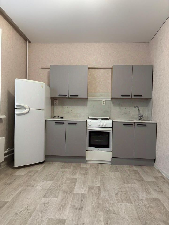 Исправная бытовая техника: холодильник, плита, стиральная машина.