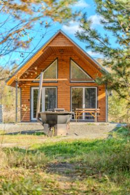 - Светлый дом с панорамными окнами, видом на лес и 6 удобными спальными местами. Есть банный чан.