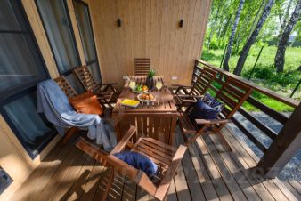 • Огромная открытая терраса с удобной зоной для отдыха, где вы сможете наслаждаться потрясающим видом на озеро, любоваться закатами и наблюдать за звёздным небом