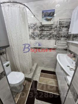Санузел совмещенный, весь в кафеле. Душевой поддон, новый хромированный полотенцесушитель и вся сантехника.