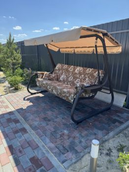 На террасе мебель (большой стол, стулья 8шт )