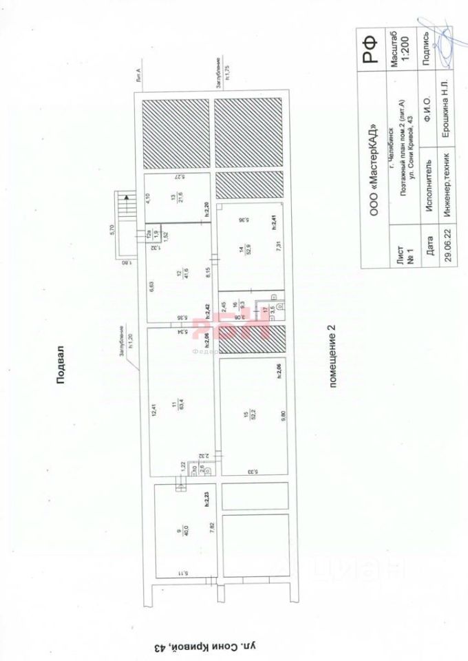 Продам с Арендатором Помещение свободного назначения 274,2 м² в цоколе 5-ти этажного здания по адресу: г. Челябинск, ул. С. Кривой, д. 43