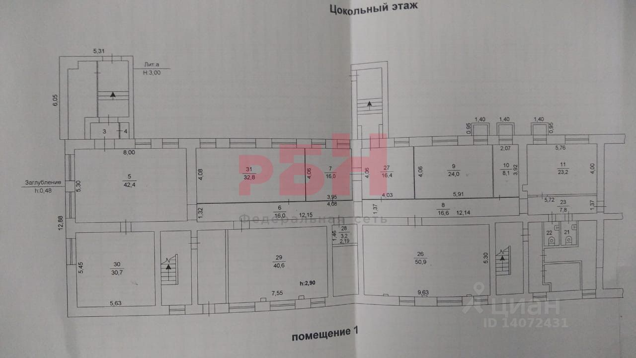 Продам помещение в центре города с арендатором Монетка площадью 342,6 м² +соседнее помещение площадью 274,2 м² в цоколе 5-ти этажного здания по адресу: г. Челябинск, ул. С. Кривой, д. 43
