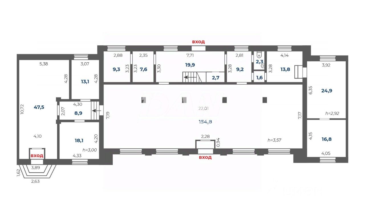 Универсальное использования помещения со свободной планировкой.
