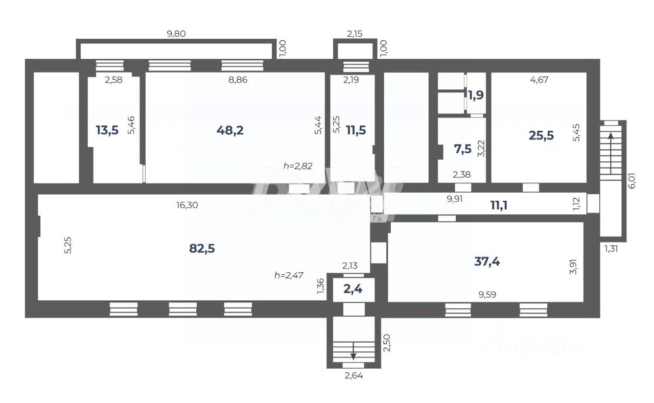 Высота потолков: 2,8 м.