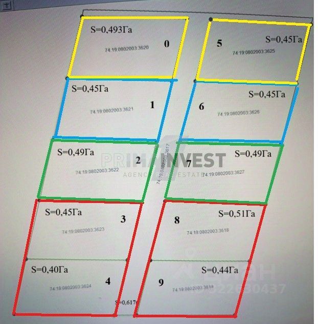 два участка по 0,49 Га в середине ( зелёные границы на схеме) = 9 мл р каждый участок